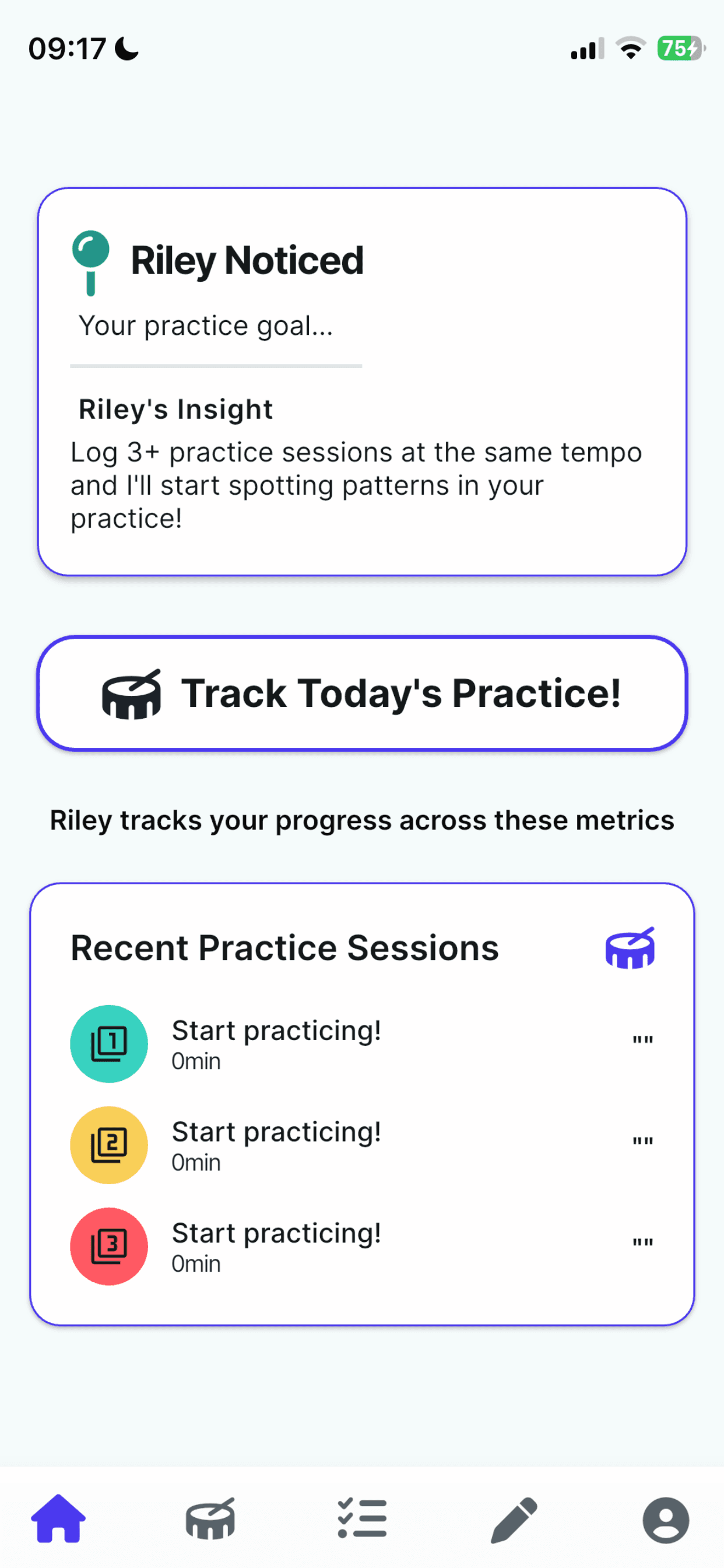 Log what you practiced. Riley shows if you're progressing or plateauing.